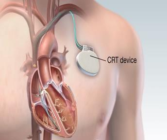 心臟再同步化治療,指雙心室起搏器,是通過雙心室同步起搏的方式,幫助心衰患者實(shí)現(xiàn)正常起搏的裝置。CRT包括一個口袋大小的脈沖發(fā)生器和三根電極導(dǎo)線,可被植入人體。通過監(jiān)測心律,在發(fā)現(xiàn)異常后,信號發(fā)生器發(fā)送電流脈沖,刺激心室重新同步,從而改善癥狀,提高患者的心臟泵血效率。目前有兩種類型的CRT裝置:植入式心臟再同步治療起搏器(CRT-P)和植入式心臟再同步治療除顫器(CRT-D)。主要區(qū)別在于后者除了改善心臟收縮同步性外,還具備除顫功能,能及時處理危及生命的室性心律失常,避免猝死。