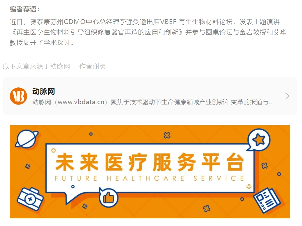 2024年5月7日至10日,第八屆未來醫(yī)療生態(tài)展會以“新青年”為主題,由VB100、動脈網(wǎng)、蛋殼研究院、動脈橙主辦,天津經(jīng)濟(jì)技術(shù)開發(fā)區(qū)(TEDA)聯(lián)合主辦,與天津?yàn)I海中關(guān)村科技園管委會、北塘灣數(shù)字經(jīng)濟(jì)產(chǎn)業(yè)園戰(zhàn)略合作,于北京·北人亦創(chuàng)國際會展中心正式召開。作為此次論壇備受關(guān)注的熱門論壇之一,生物再生材料論壇于5月10日下午圓滿落幕。