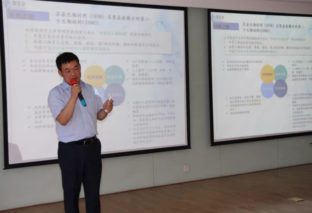 培訓會在下午1:30準時開始,集團CEO饒總對公司整體發(fā)展做詳細講解,饒總分別從“企業(yè)發(fā)展歷程”、“管理團隊介紹”、“我們的未來發(fā)展”三大方面進行介紹,培訓中,饒總憶苦思甜,深情講述奧泰康發(fā)展初期的鳳凰涅槃,在場員工無一不為之動容,為公司初期艱苦奮斗,堅守信念的精神所感動;之后奧泰康進入快速發(fā)展階段,先后獲得多項創(chuàng)新醫(yī)療器械批件,并參與多項國家重點研究項目,并與多家國內外知名企業(yè)合作,擁有醫(yī)療器械CDMO行業(yè)唯一的已投產GMP車間等等,從最初單項的CRO項目服務延伸到CRO/CDMO一體化服務,致力于成為醫(yī)藥行業(yè)MA解決方案的領導者;