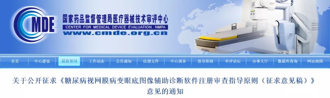 關(guān)于公開征求《糖尿病視網(wǎng)膜病變眼底圖像輔助診斷軟件注冊審查指導(dǎo)原則(征求意見稿)》意見的通知