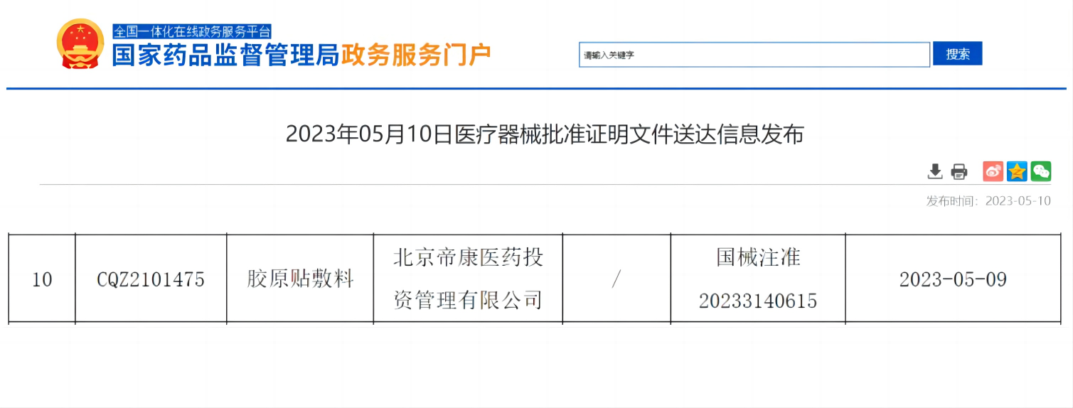 MA成果發(fā)布_2023年5月9日,奧泰康北京CDMO中心取得「首張」國家藥監(jiān)局批準(zhǔn)的三類醫(yī)療器械注冊證2023年5月9日,奧泰康北京CDMO中心取得「首張」國家藥監(jiān)局批準(zhǔn)的三類醫(yī)療器械注冊證(國械注準(zhǔn)20233140615),系全國首個以細(xì)胞外基質(zhì)來源的膠原蛋白為原料制備的三類膠原貼敷料。此項目是北京CDMO中心基于“十三五”國家重點(diǎn)研發(fā)計劃項目,在MAH制度下,與湖北恒安芙林藥業(yè)股份有限公司戰(zhàn)略合作完成涵蓋市場準(zhǔn)入全流程業(yè)務(wù)的醫(yī)美類項目,也是器械CRO/CDMO行業(yè)受托研發(fā)誕生的全國首個三類醫(yī)療器械注冊證,具有里程碑意義。