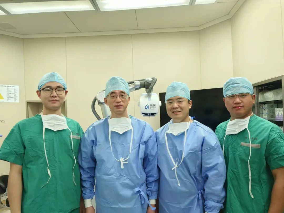 ▲華山醫(yī)院吳文育主任(左二)與磅策醫(yī)療團(tuán)隊(duì)臨床試驗(yàn)合影