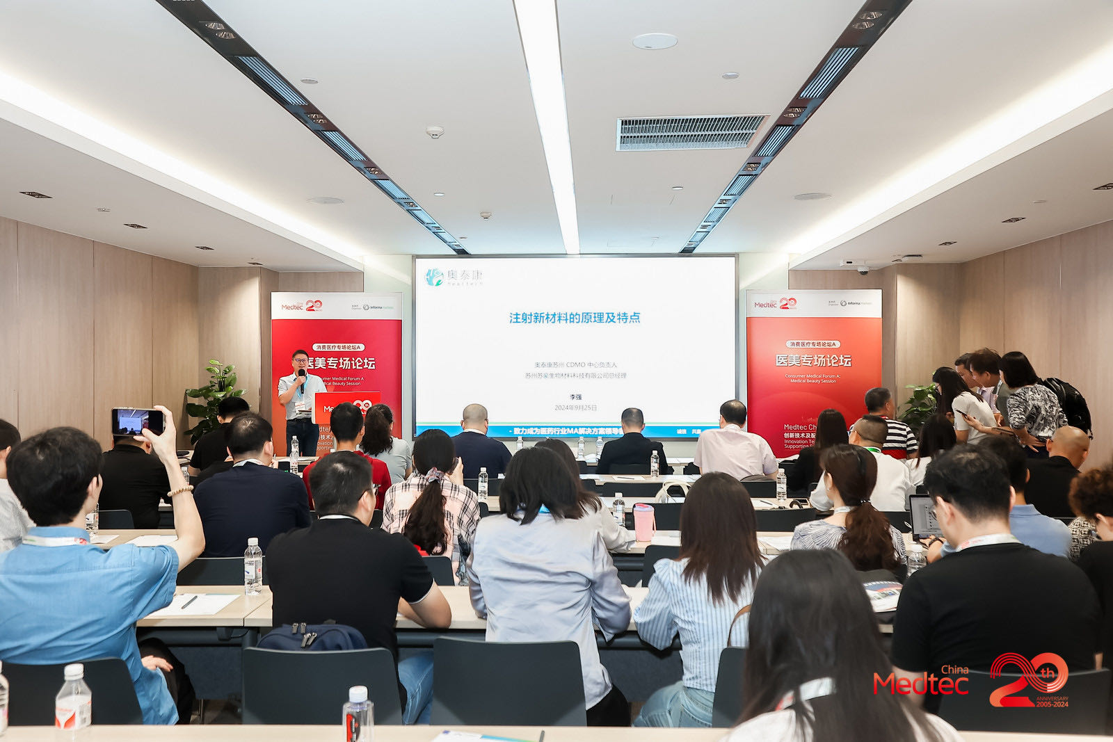 9月27日,上海世博展覽館,Medtec China 2024暨第十八屆國(guó)際醫(yī)療器械設(shè)計(jì)與制造技術(shù)展覽會(huì)落下帷幕,這一盛會(huì)匯集了來(lái)自全球各地的頂尖企業(yè)、科研機(jī)構(gòu)及行業(yè)專家。奧泰康作為參展商受邀參加會(huì)議,在醫(yī)美專場(chǎng)論壇中,奧泰康蘇州CDMO中心負(fù)責(zé)人、蘇州蘇豪生物材料科技有限公司總經(jīng)理李強(qiáng)以注射新材料的原理及特點(diǎn)》為主題進(jìn)行分享,與行業(yè)伙伴共同探索醫(yī)療器械領(lǐng)域的最新趨勢(shì)與未來(lái)發(fā)展方向。