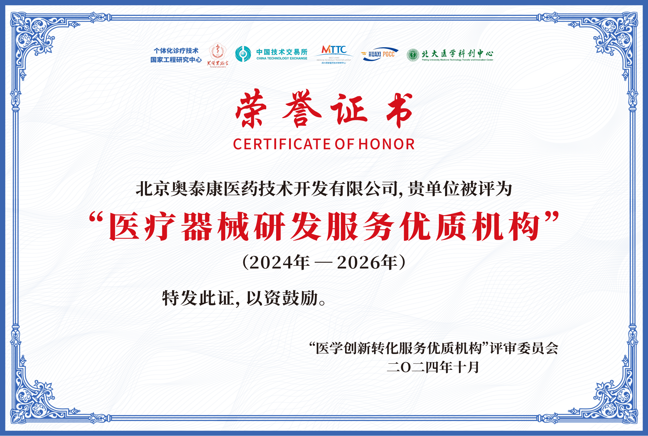 喜訊|奧泰康入選2024年度醫(yī)療器械研發(fā)服務(wù)優(yōu)質(zhì)機構(gòu)