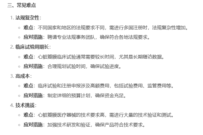 然而,每一項創(chuàng)新技術(shù)的臨床應用,都離不開嚴謹?shù)呐R床試驗驗證。心臟瓣膜醫(yī)療器械的臨床試驗和注冊申報是一個復雜且嚴格的過程,其中涉及的多個關鍵環(huán)節(jié)和潛在難點,關于這些,看看當下最熱門 AI工具deepseek怎么說吧~