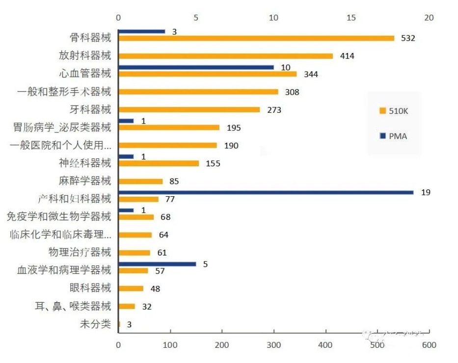 截止2021年1月4日,2020年美國FDA共批準2906個510(k)途徑的產品—心血管類產品數(shù)量名列前茅。
