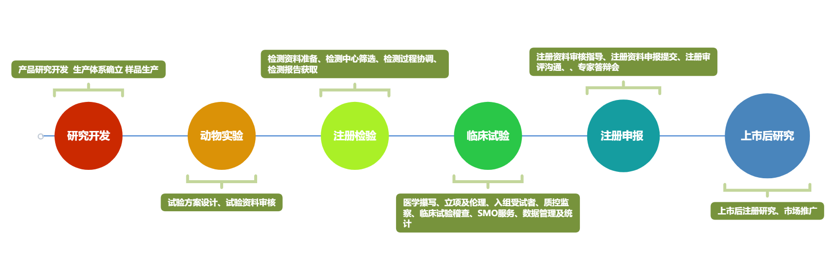 研究開發(fā)—動物實驗—注冊檢驗—臨床試驗—注冊申報—上市后研究